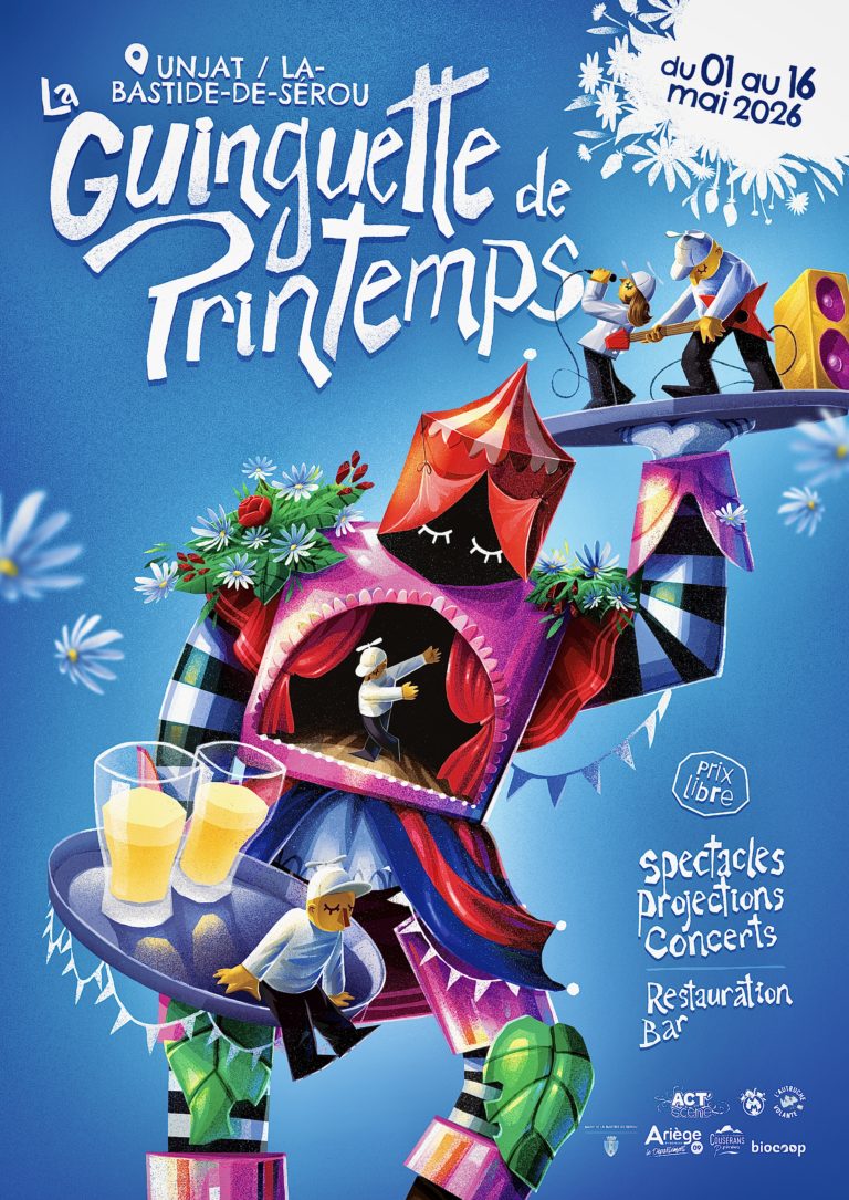 3 collectifs, un projet Quoi de mieux pour célébrer le printemps qu‘une guinguette sous chapiteau ? Act‘en Scène, l‘Autruche Volante et Mesclavie s‘associent pour vous proposer une programmation haute en couleur à La Bastide de Sérou. Concerts, spectacles, ateliers, il y en aura pour tous les goûts. Venez vibrer au rythme d‘un bal afro-colombien, défoulez-vous sur du rock déjanté ! Ne manquez pas l‘occasion d‘un ciné plein-air ou d‘un spectacle aérien.